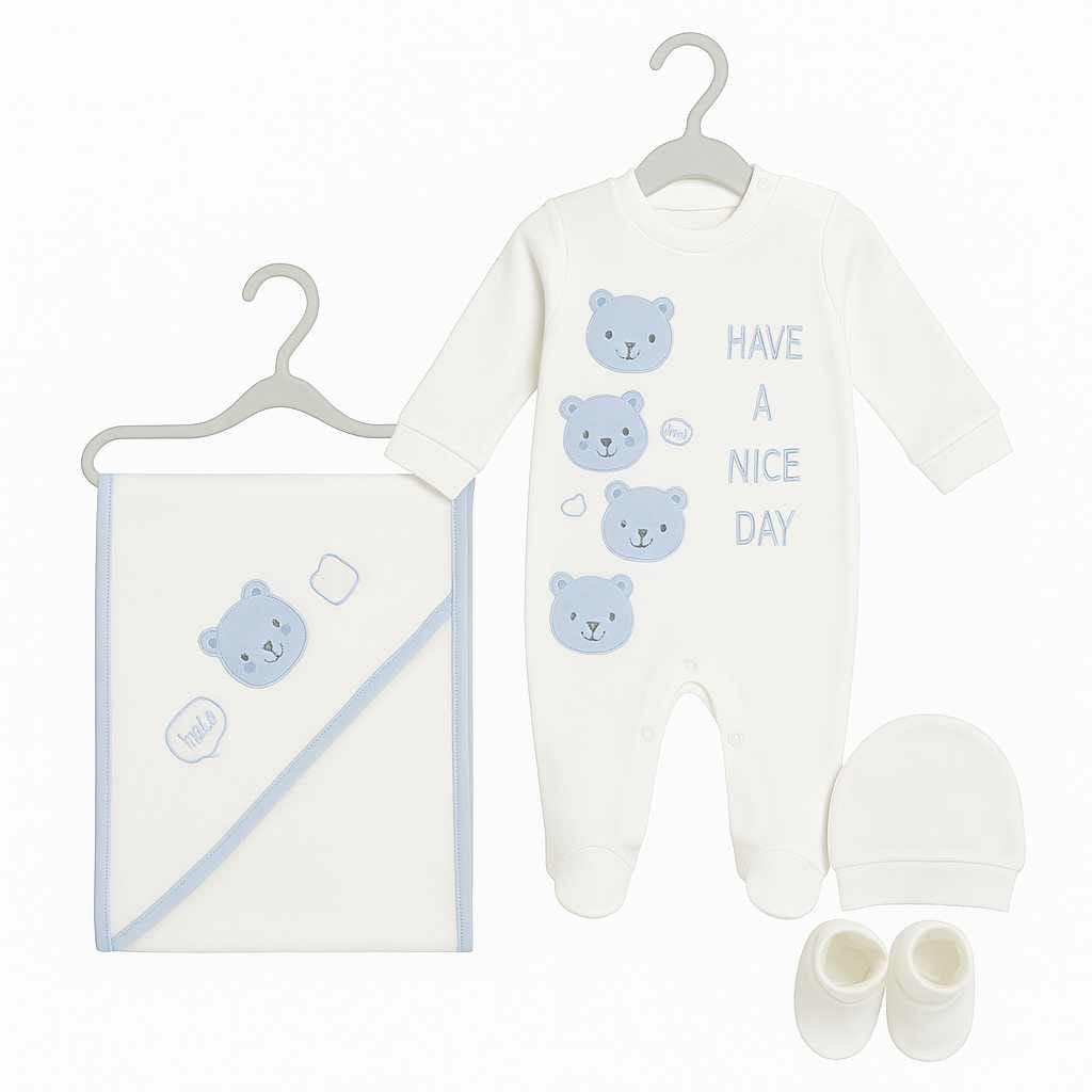 🧸 "Bear Hugs" 4-Piece Newborn Essentials Set – By 023 Baby Wear