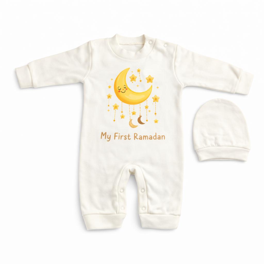Celebrate your baby’s very first Ramadan with our adorable “My First Ramadan” Sleepsuit, featuring a dreamy moon and stars design that captures the magic of the holy month.