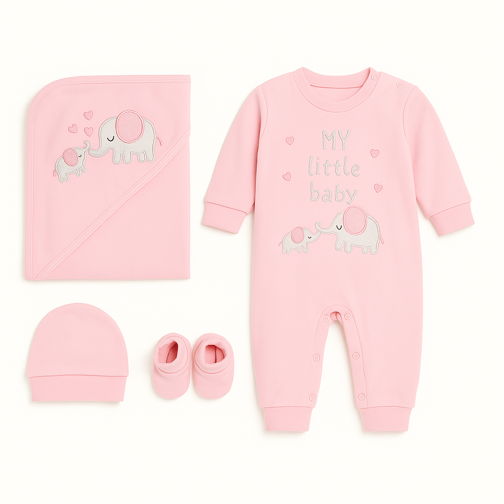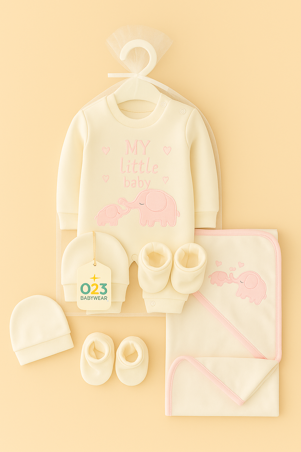 Wrap your newborn in love and comfort with our adorable “My Little Elephant” 3-Piece Baby Wear Set from 023 Baby Wear. Designed for the softest snuggles, this charming baby outfit features:
