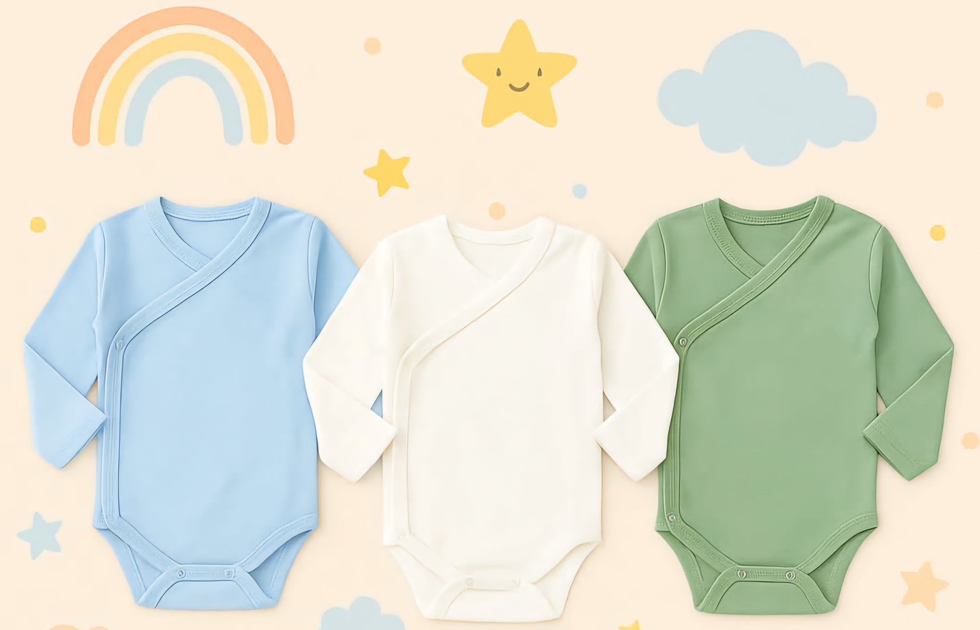 Keep your newborn cozy and comfortable with our premium 100% cotton wrap-over baby bodysuits. Designed with a practical side-snap closure, these long-sleeve onesies make diaper changes quick and fuss-free – perfect for newborns and parents alike.