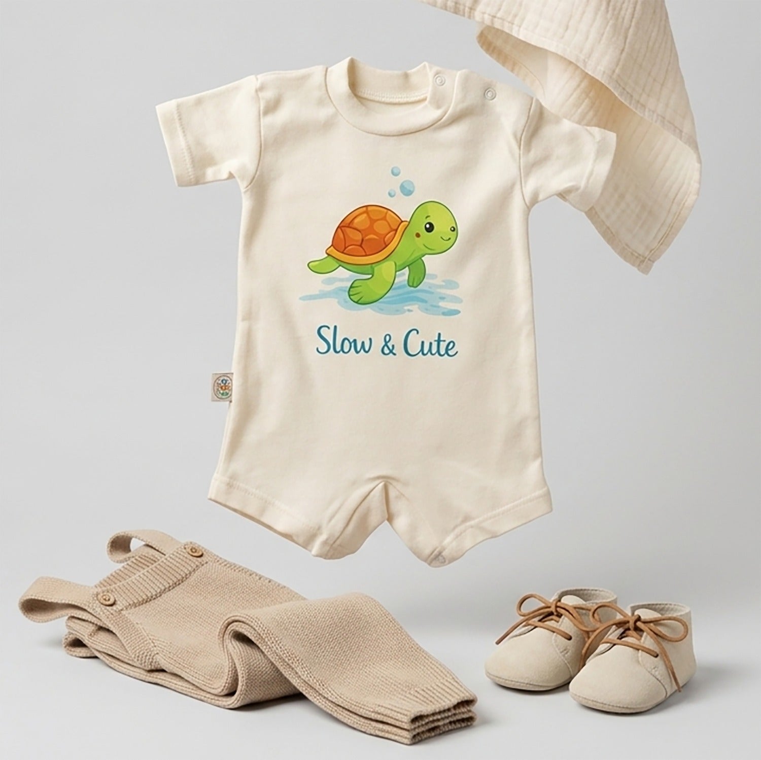 - 🐢 Cute turtle print with “Slow & Cute” design